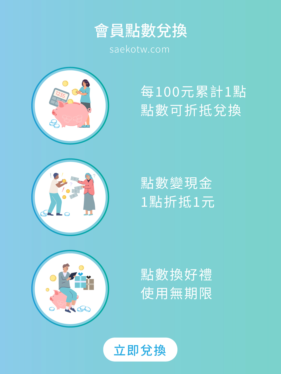 • 會員點數可兌換贈品或折抵消費